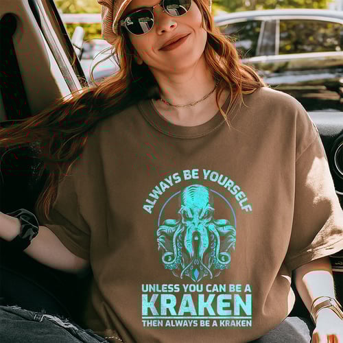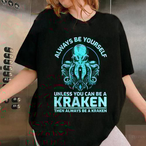Show off your sense of humor and love for sea creatures with this fun Always Be Yourself Unless You Can Be A Kraken T-shirt. Featuring a playful octopus illustration and witty motto, this shirt is perfect for fans of ocean life and clever puns. Made from soft, comfortable fabric, it’s designed for a relaxed fit ideal for everyday wear. Whether you’re heading out with friends, lounging at home, or looking for a unique gift, this shirt adds a splash of personality to any outfit. **Features:** – Classic black color with bold, colorful graphics – Vibrant octopus design with humorous text printed on the front – Soft, breathable material for all-day comfort – Available in a range of sizes for the perfect fit – Durable print that keeps its look wash after wash – Suitable for casual wear, themed parties, or as a fun gift Add a touch of ocean-inspired fun to your wardrobe with this quirky and comfortable octopus T-shirt.