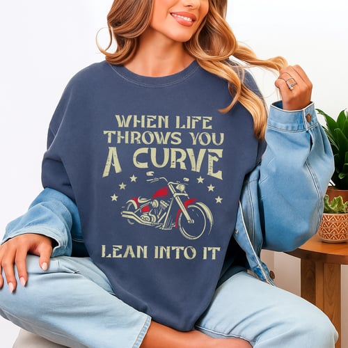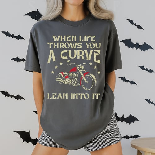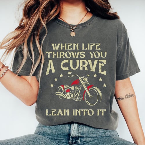 **Biker When Life Throws You A Curve Motorcycle T-Shirt** Show your love for the open road with this bold When Life Throws You A Curve, Lean Into It motorcycle
