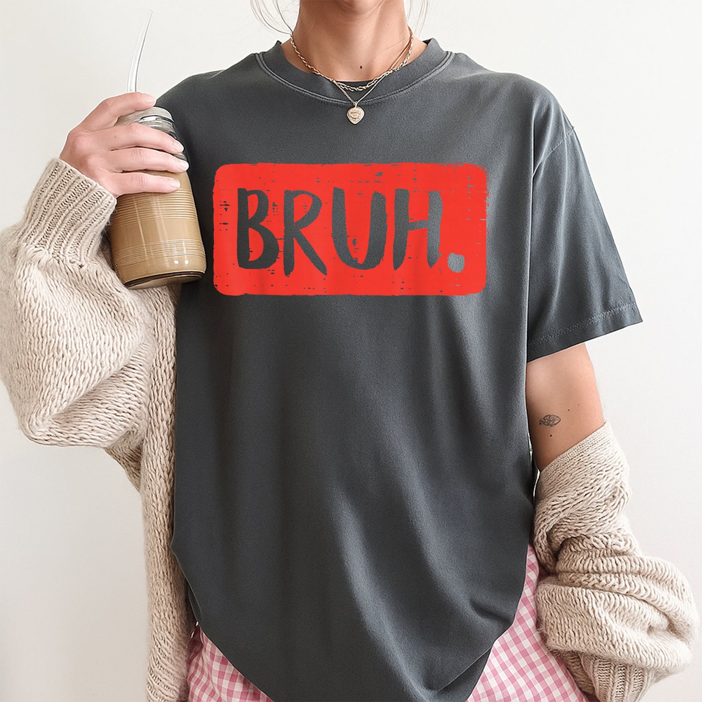 Show off your sense of humor with this Bruh Funny Saying Meme T-Shirt. Featuring the bold white text BRUH in a playful, all-caps font, this shirt brings a trendy and expressive look to your casual style. The classic fit and short sleeves make it comfortable for everyday wear. It’s made from soft, lightweight material that feels great throughout the day. The black color provides a versatile base that pairs well with jeans, shorts, or joggers. Perfect for anyone who loves meme culture or enjoys a good laugh with friends. This T-shirt makes a fun addition to your wardrobe or a unique gift for anyone who appreciates internet slang and humor. **Product Features:** – Black T-shirt with white BRUH text – Soft, lightweight, and comfortable material – Classic fit with short sleeves and crew neckline – Durable design great for everyday wear – Easy to pair with any casual outfit Add a touch of personality to your look with this funny and stylish shirt, ideal for teens and youth who love staying on trend.