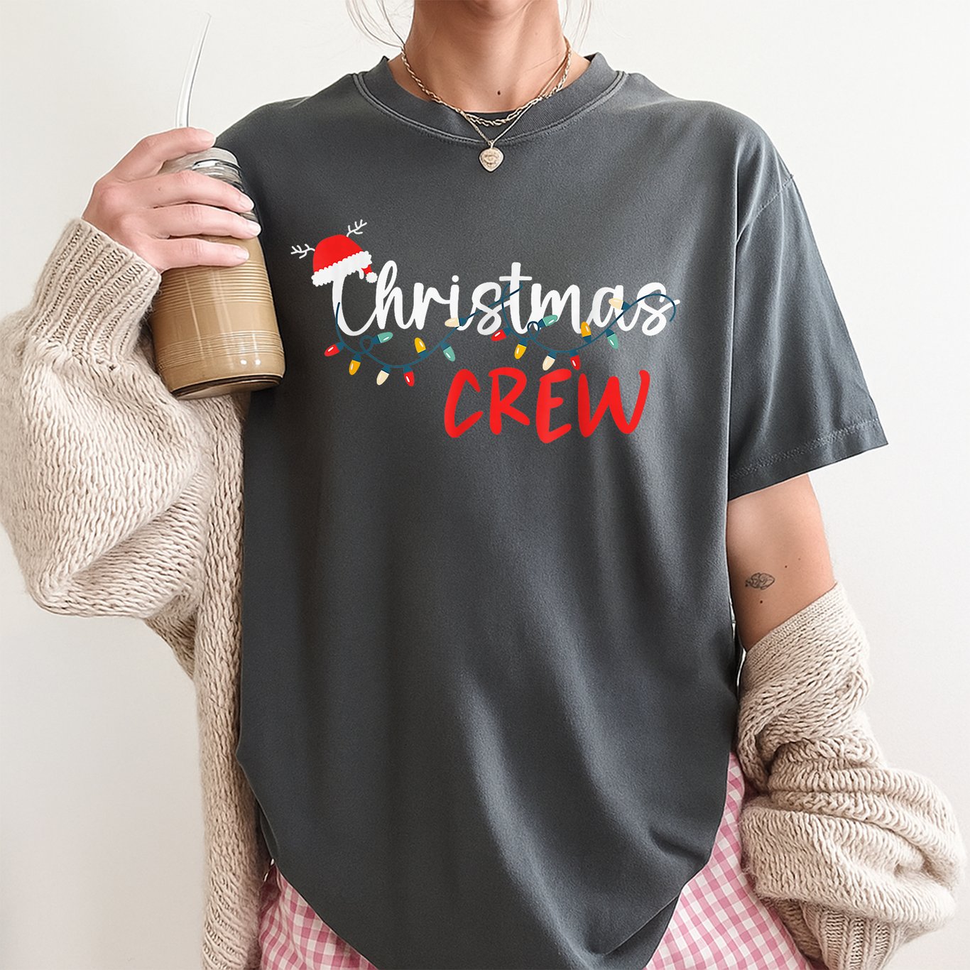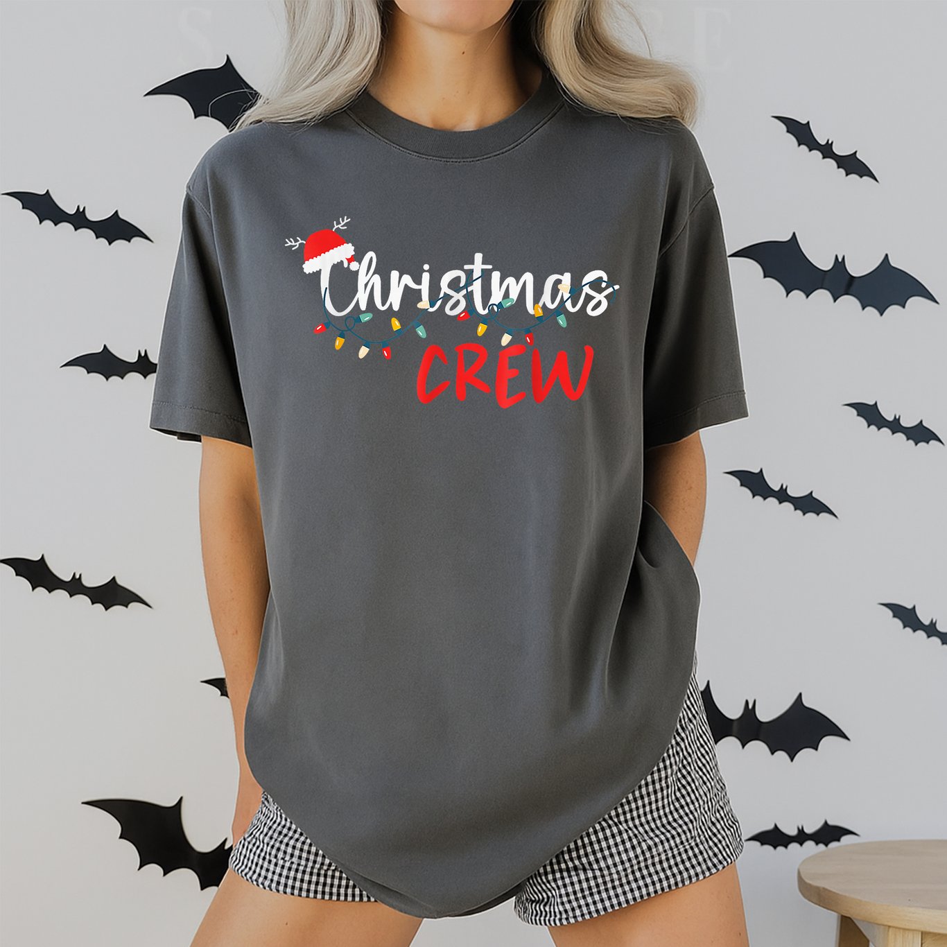 Get ready for festive fun with the Christmas Crew Xmas Lights Family Matching Pajamas Holiday T-Shirt. This cheerful shirt features a bright and colorful string of Christmas lights across the front, paired with the playful Christmas Crew slogan in bold lettering. The design is printed on a classic short-sleeve tee in solid black. This holiday t-shirt is made from soft, breathable fabric for comfort all season long. The fit is suitable for group family photos, holiday mornings, or casual gatherings with loved ones. The unisex style works well for everyone, making it easy to create a coordinated look. Highlights: – Fun Christmas lights graphic with Christmas Crew slogan – Soft fabric feels comfortable throughout the day – Solid black base suits any holiday wardrobe – Short sleeves and crew neckline for classic style – Ideal for matching with family or friends during the holidays Celebrate the season in style and capture great holiday memories with this festive Christmas Crew t-shirt.