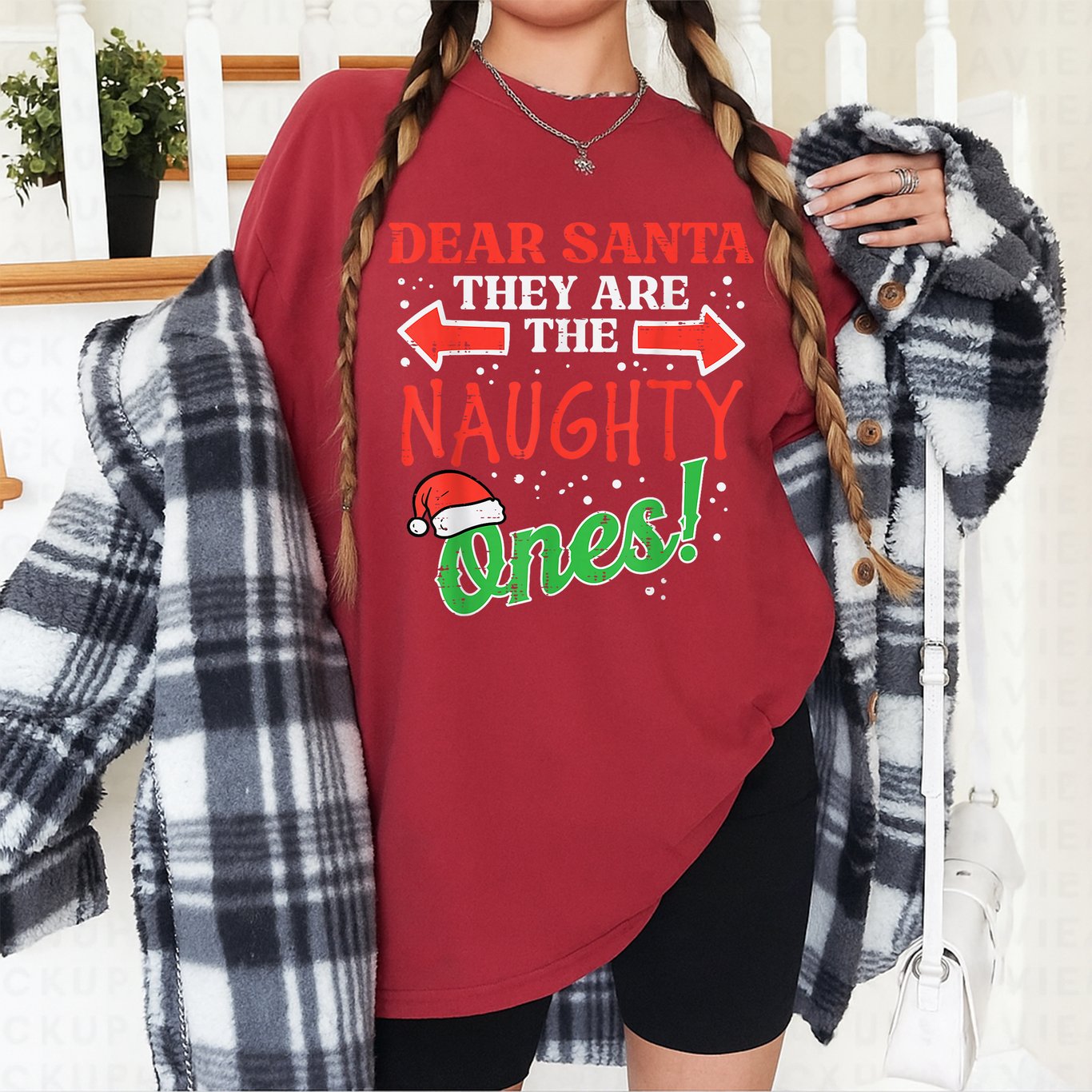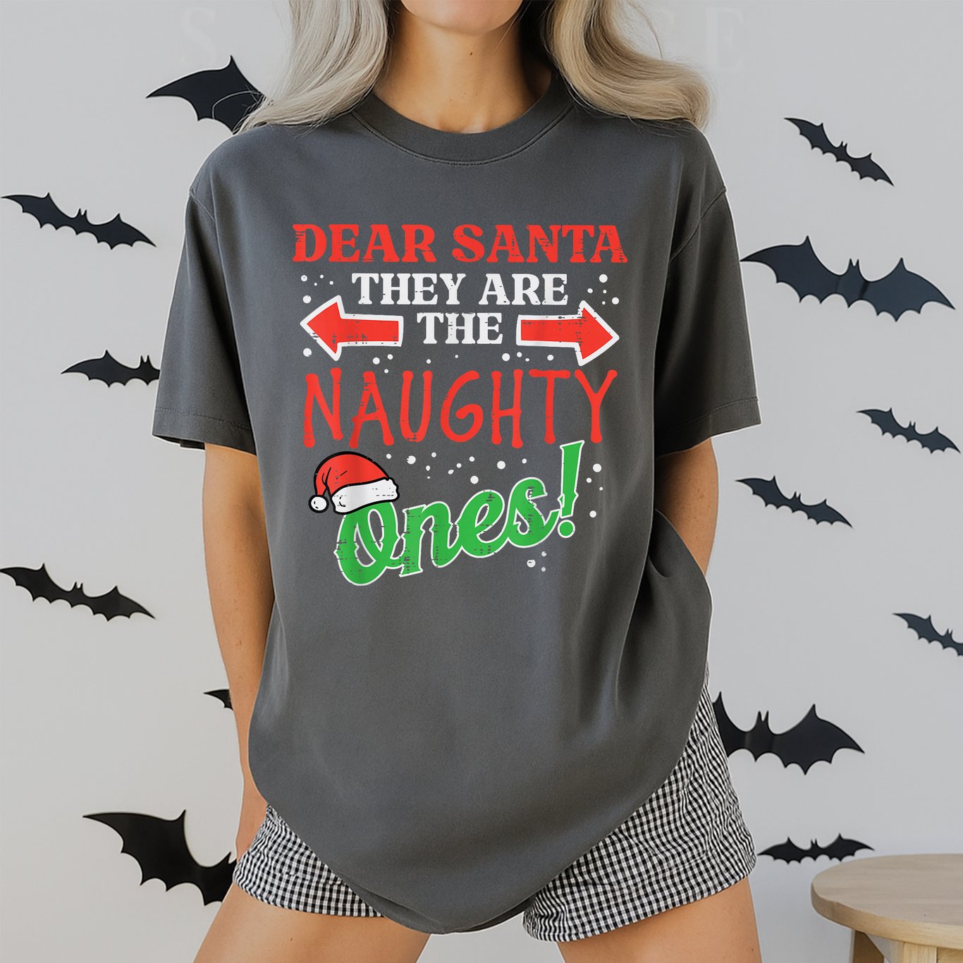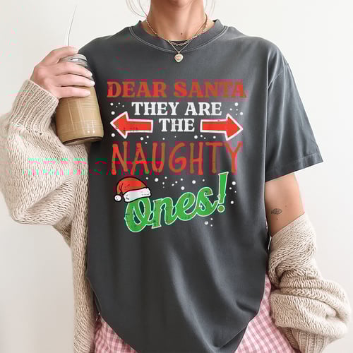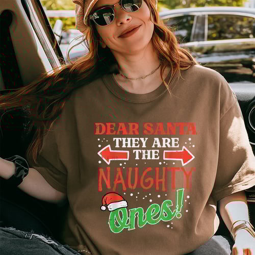 Add some humor to your holiday wardrobe with the Dear Santa They Naughty Ones Christmas T-Shirt. This fun graphic tee features a bold Santa design with the cheeky phrase front and center, perfect for anyone who loves to make a statement during the festive season. Made from soft, breathable material, this unisex t-shirt offers a comfortable fit and durable quality. The classic black color and eye-catching print make it easy to pair with jeans, festive accessories, or cozy sweaters for a casual holiday look. **Product Features** – Festive design with a playful Christmas message – Comfortable, lightweight fabric – Available in a range of sizes for a relaxed fit – Short sleeves and crew neck style – Easy to layer with jackets or hoodies Spread smiles at gatherings, parties, or even on a relaxed day at home—this t-shirt is a great way to show off your holiday spirit and sense of humor.