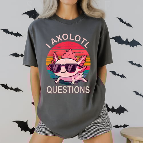 Show off your playful side with this Funny I Axolotl Questions T-Shirt. Featuring a cool axolotl wearing sunglasses, this shirt brings personality and charm to your everyday look. The colorful graphic pops against the deep black fabric, making it easy to match with your favorite jeans, shorts, or skirts. Made from a soft, lightweight fabric, this unisex tee offers comfort all day long. Its classic fit and crew neckline provide a relaxed yet flattering silhouette for men, women, or teens. Double-stitched seams help the shirt keep its shape wash after wash. Whether you love quirky animals or want a fun conversation starter, this axolotl T-shirt is the perfect addition to any casual wardrobe. Great for birthdays, holidays, or just celebrating a love for unique creatures. **Details:** – Fun, colorful axolotl sunglasses design on black background – Soft and lightweight material – Classic crew neck and comfortable fit – Short sleeves – Durable, double-stitched construction Wear it to a party, hangout, or just relaxing at home—this shirt is ready to