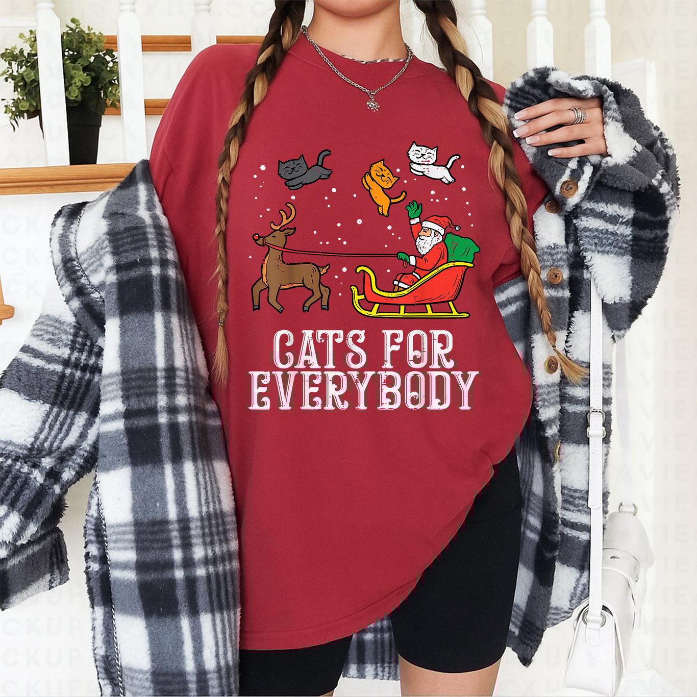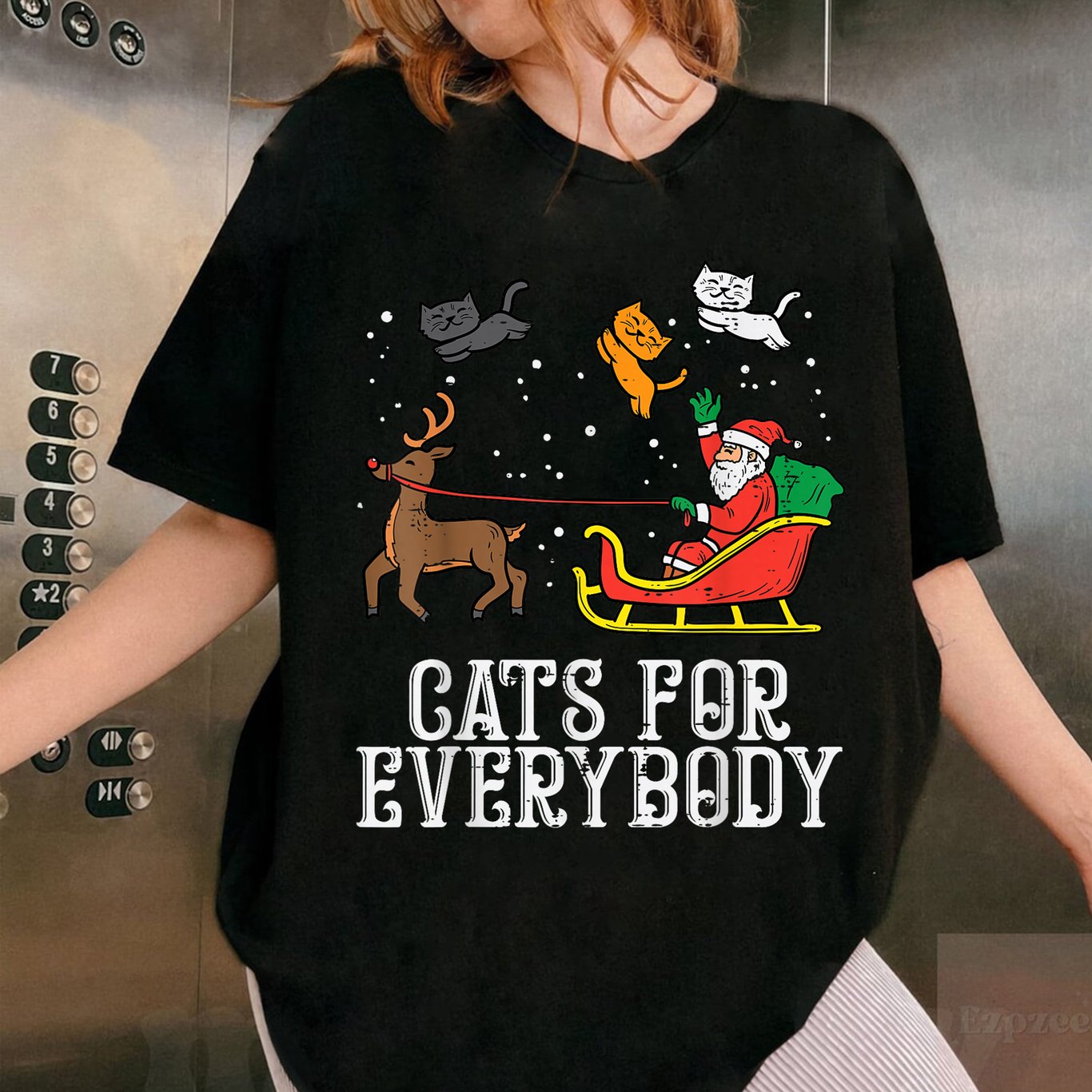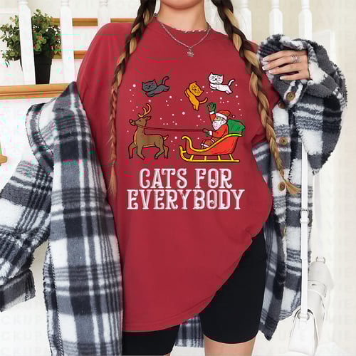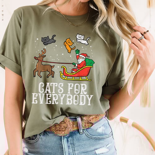 **Cats For Everybody Christmas Cat Funny Xmas Women Santa T-Shirt** Celebrate the holiday season with this festive and funny Christmas cat t-shirt, designed for anyone who loves cats and Christmas cheer. Featuring a playful print of a cat in a Santa hat and bold Cats For Everybody text, this shirt brings joyful style to your winter wardrobe. The t-shirt comes in classic black, making the colorful holiday graphics stand out. Made from soft and comfortable fabric, it’s ideal for casual wear, parties, or cozy days at home. The fit is tailored for women, with a flattering cut and crew neckline. **Product Features:** – Fun Christmas cat design with Santa hat – Soft, lightweight material for all-day comfort – Classic black color for versatile styling – Women’s fit with short sleeves and crew neck – Perfect for holiday gatherings, gift giving, or cat lovers Show off your love for cats and the holidays with this cheerful and eye-catching t-shirt.