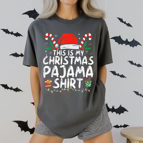 **This Is My Christmas Pajama Shirt – Funny Xmas PJs T-Shirt** Bring festive cheer to your holiday wardrobe with this playful This Is My Christmas Pajama Shirt tee. Designed for both men and women, this shirt is perfect for lounging, holiday parties, or matching family photos. **Product Features:** – Classic black t-shirt with bold, white and red lettering – Lightweight fabric for comfort through the holiday season – Unisex fit, available in multiple sizes – Short sleeves and a crew neck for a timeless, relaxed look – Great as a gift or to wear at Christmas gatherings and pajama parties Add a touch of humor to your Christmas celebrations with this fun, easy-to-wear shirt.