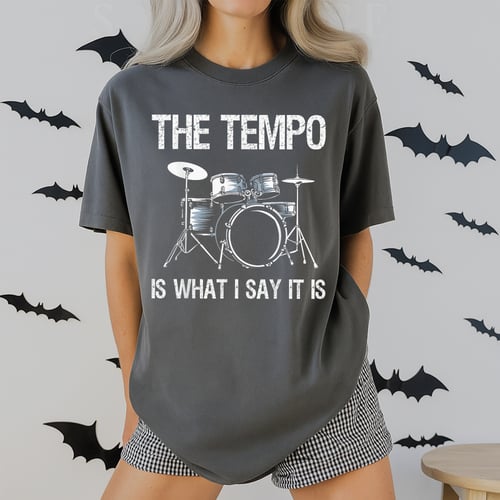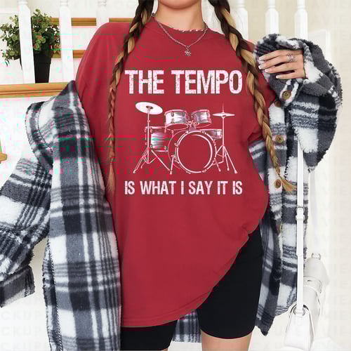 Show off your sense of humor and love for drumming with the The Tempo Is What I Say It Is T-shirt. Designed for both men and women, this shirt is perfect for