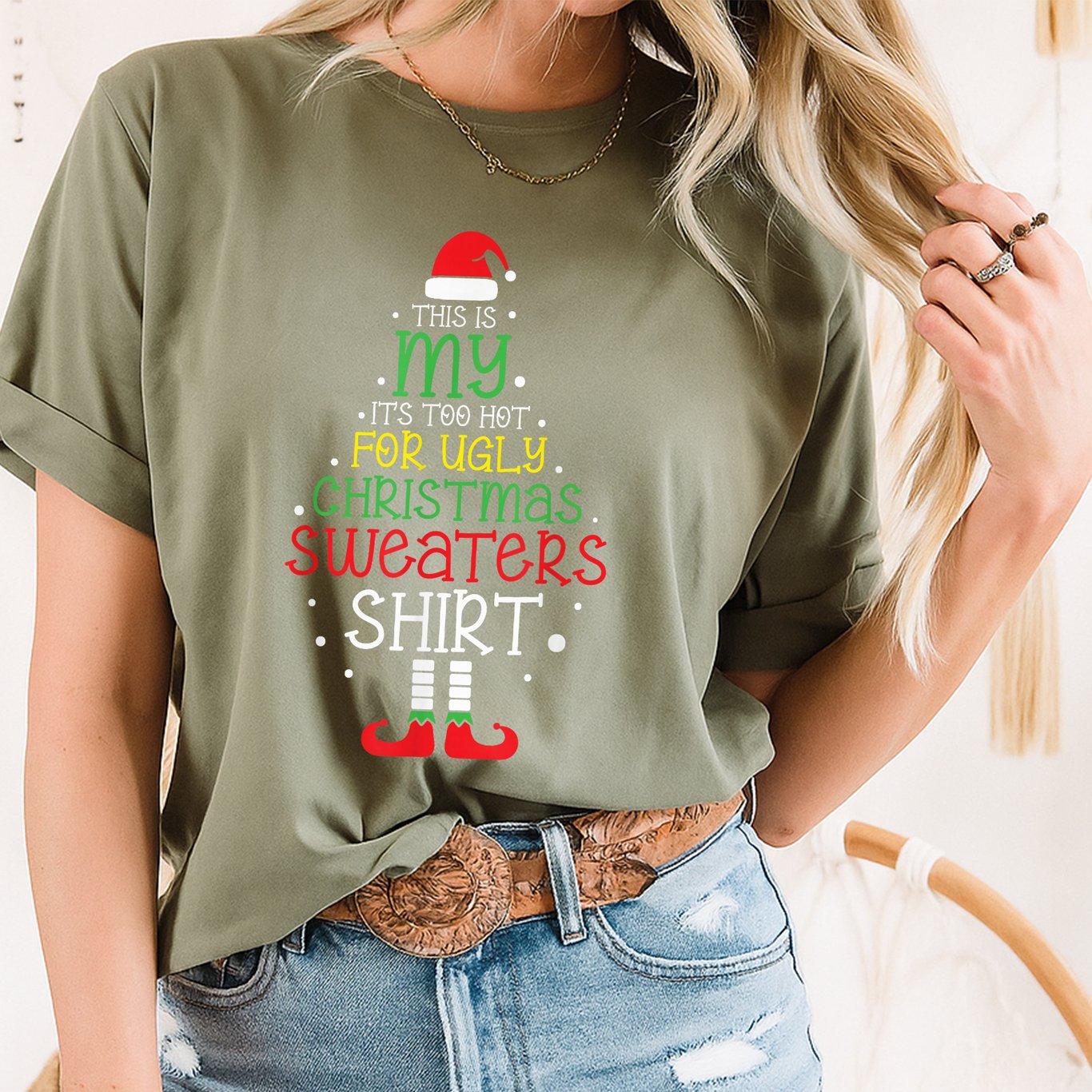 Add some fun to your holiday wardrobe with the It’s Too Hot For Ugly Christmas Shirt t-shirt. This funny Christmas shirt is perfect for anyone looking to celebrate the season with a sense of humor and a cool, casual style. Made from soft, comfortable material, this tee is ideal for holiday parties, family gatherings, or lounging at home. The unisex fit suits men and women who want to stand out in something other than the usual ugly sweater. Features: – Graphic print reads: It’s Too Hot For Ugly Christmas Shirt in bold, festive lettering – Classic black color for easy matching with any outfit – Soft, lightweight fabric for breathability and comfort – Short sleeves and crew neck design for a relaxed fit – Available in multiple sizes Enjoy a laid-back Christmas in style with this funny, easy-to-wear t-shirt.