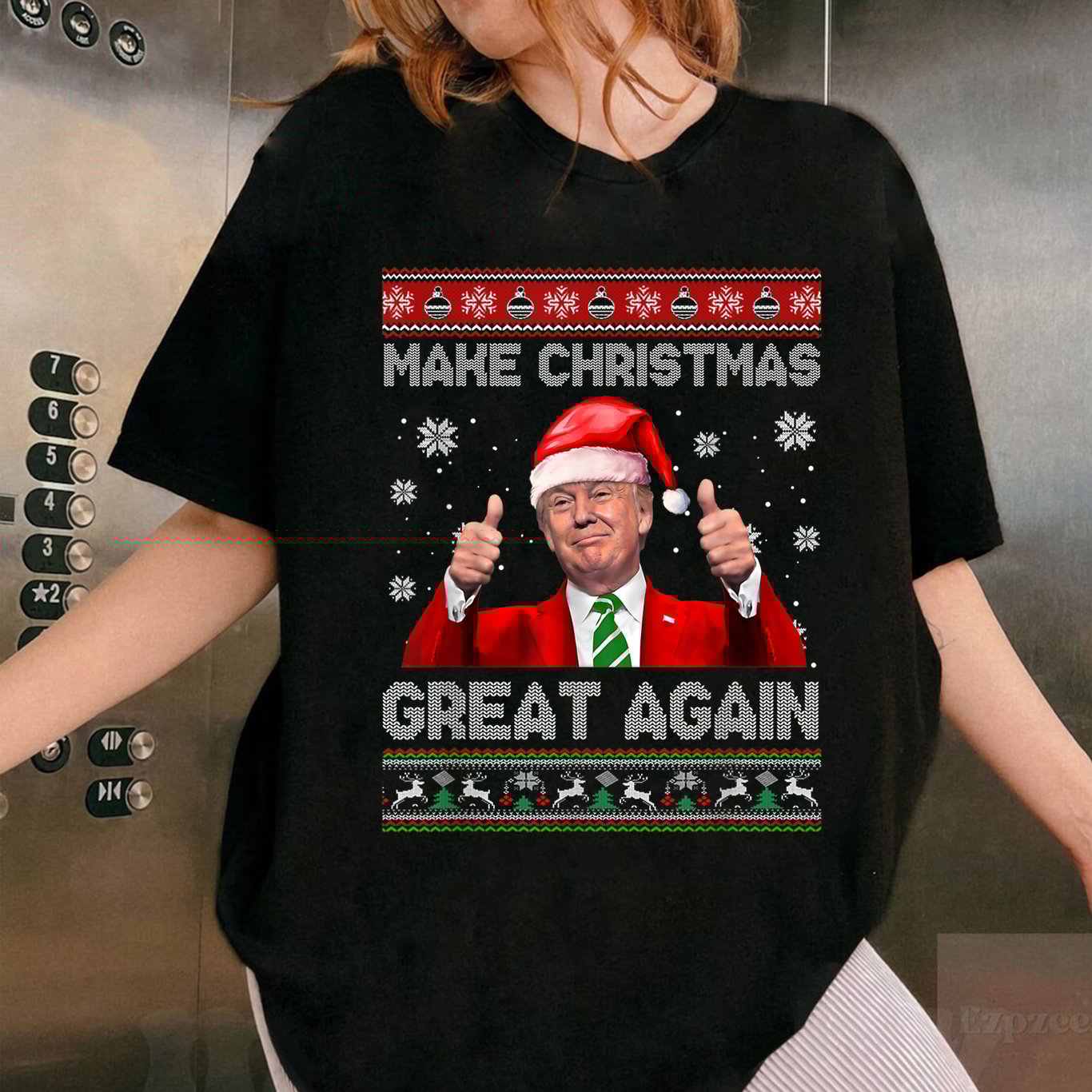 Make Christmas Great Again Funny Trump Pajama Ugly T-Shirt Holiday Novelty Gift