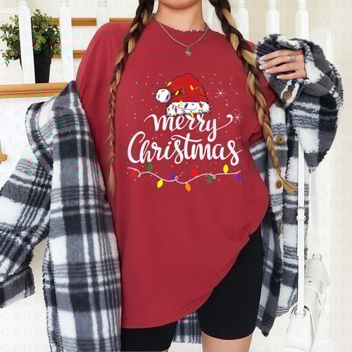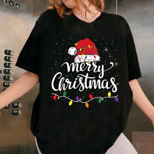 Be the first to review “Merry Christmas Lights Red Santa Hat T-Shirt Holiday Gift for Family Men and Women” Cancel reply