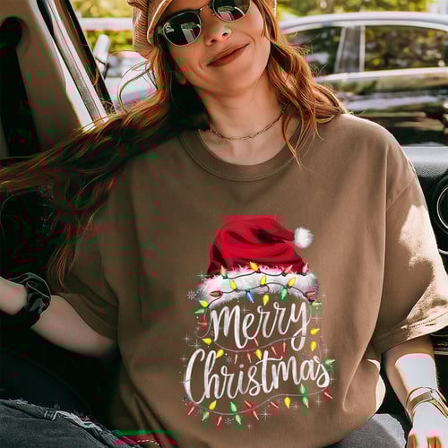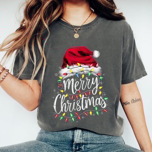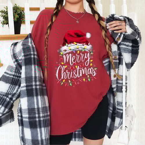 Celebrate the holiday season in style with this festive Merry Christmas Lights Red Santa Hat T-Shirt. Featuring a cheerful design of bright Christmas lights and a classic red Santa hat, this shirt is perfect for holiday gatherings, family parties, and Christmas photos. Made from soft, comfortable material, this tee is designed to provide a relaxed fit for both men and women. The vibrant red and white colors make it a standout addition to any Christmas wardrobe. Key Features: – Bold and colorful Christmas lights graphic with red Santa hat – Suitable for family events and group celebrations – Soft, breathable fabric for comfort – Unisex sizing for men and women – Easy care – machine washable Spread holiday cheer and make every celebration brighter with this fun and festive Christmas T-shirt.