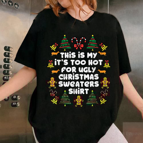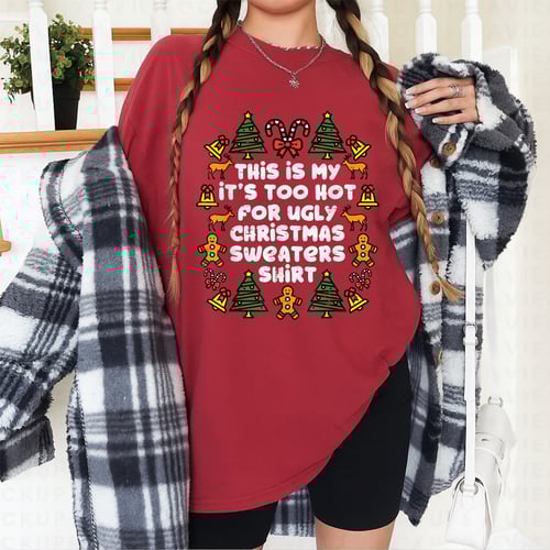 Get ready to turn heads at your next holiday gathering with the Too Hot Ugly Christmas Sweaters Funny Xmas T-Shirt. This shirt brings festive fun with a playful and bold design printed on a classic short-sleeve tee. The front features a colorful Christmas sweater print with funny holiday graphics that stand out in bright red, green, and white. The print has a cozy, sweater-inspired look, but the T-shirt is lightweight and comfortable—perfect for indoor parties or casual outings. Great for men and women, this shirt is designed to bring laughs to your family celebrations, office parties, or any festive get-together. Key Features: – Classic crew neck T-shirt style – Vibrant sweater-style print with holiday graphics – Soft fabric, comfortable fit for all-day wear – Available in multiple sizes for a range of adults – Easy to layer or wear on its own Spread holiday cheer and plenty of laughs with this fun Christmas T-shirt. Ideal for every festive occasion where you want to show off your holiday spirit!